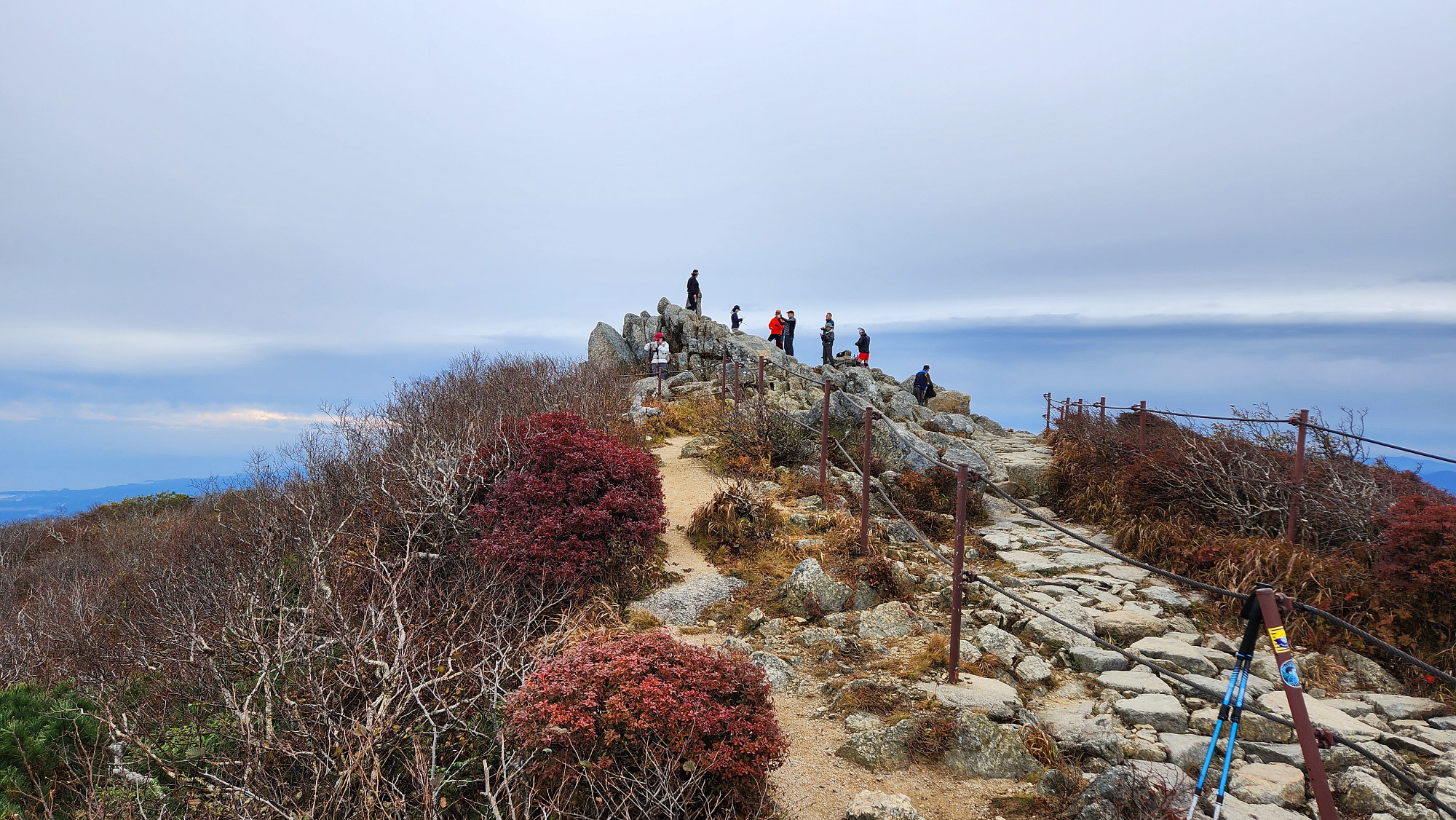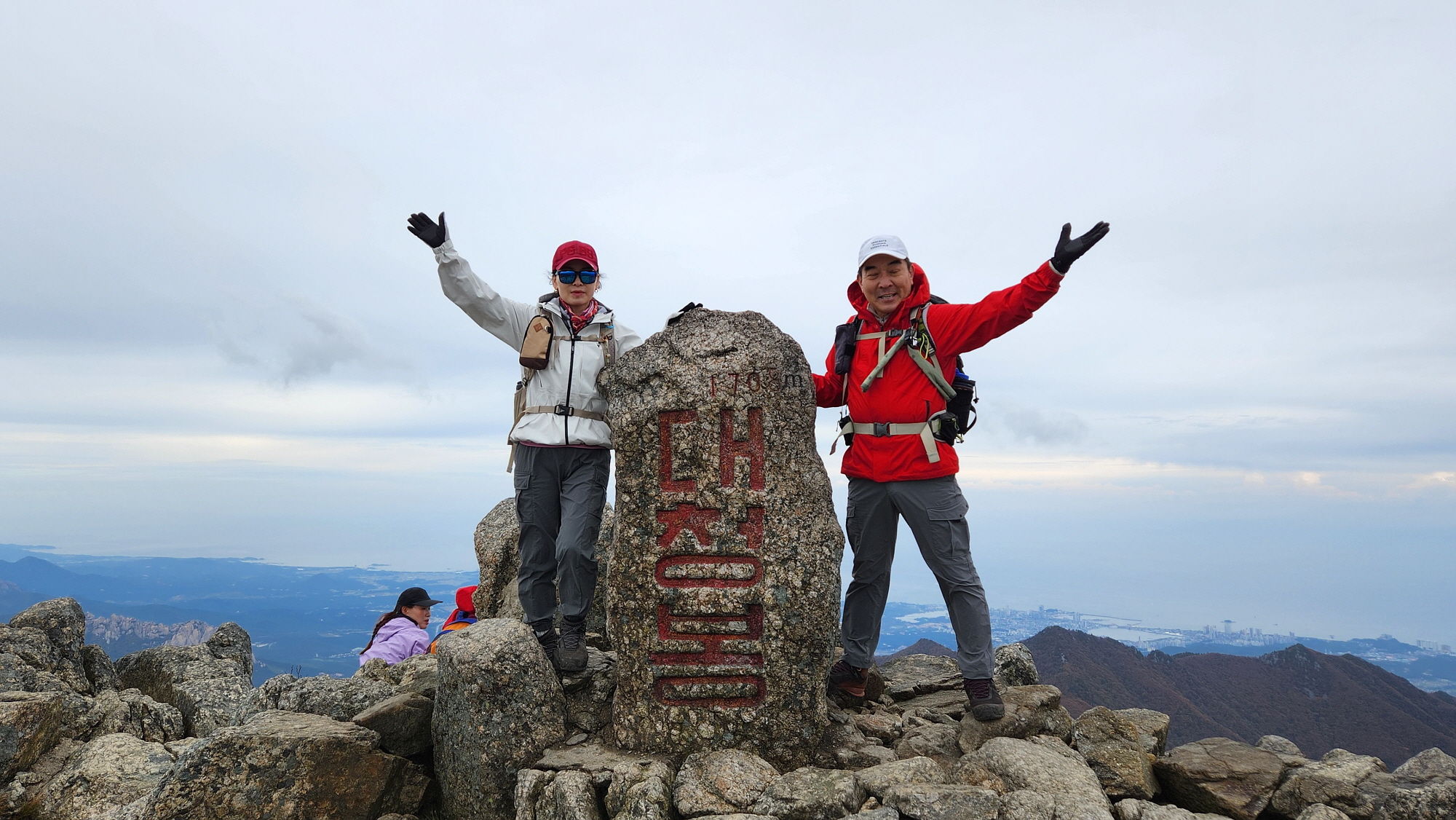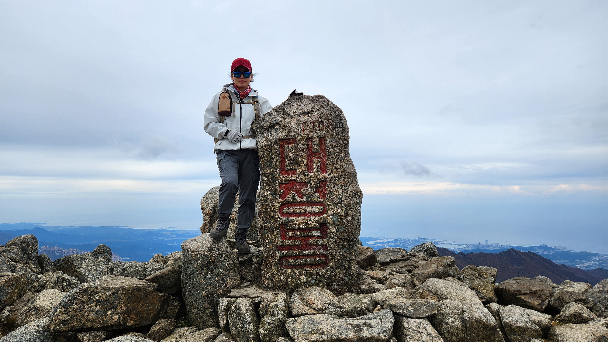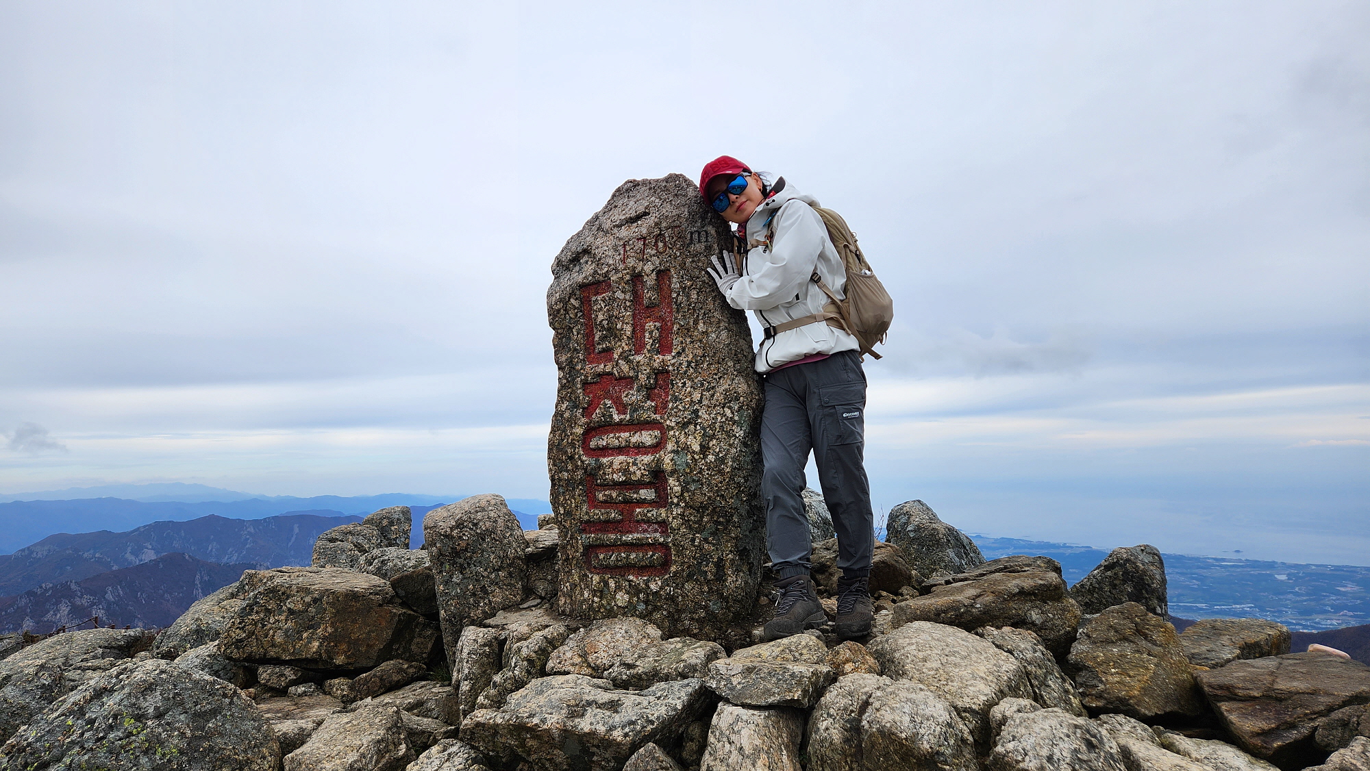 대청봉 정상 아래서 자켓을 껴 입고, 드디어 대청봉에 도착합니다.