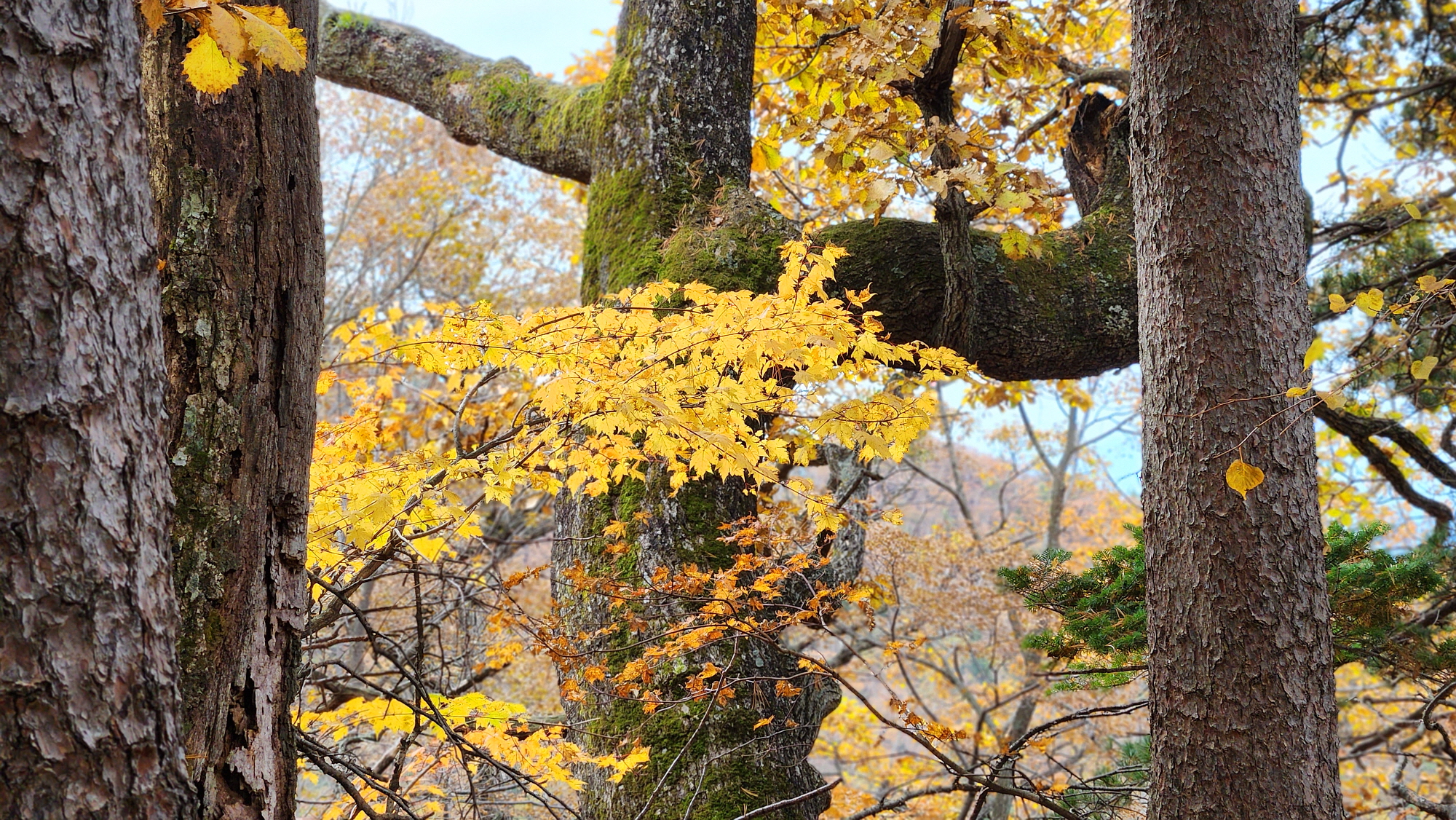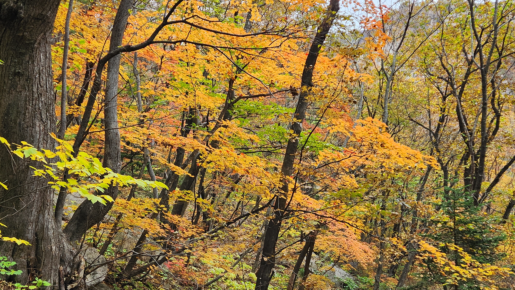 볕이 없어 좀 탁하지만, 그래도 황홀한 단풍숲 입니다.