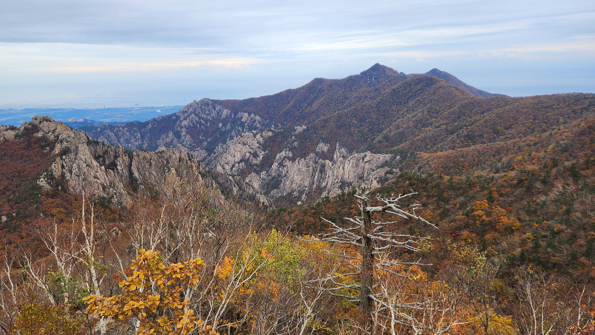 흐린날씨지만 밝아 온 새벽, 단풍빛이 설악임을 알리고 있네요.