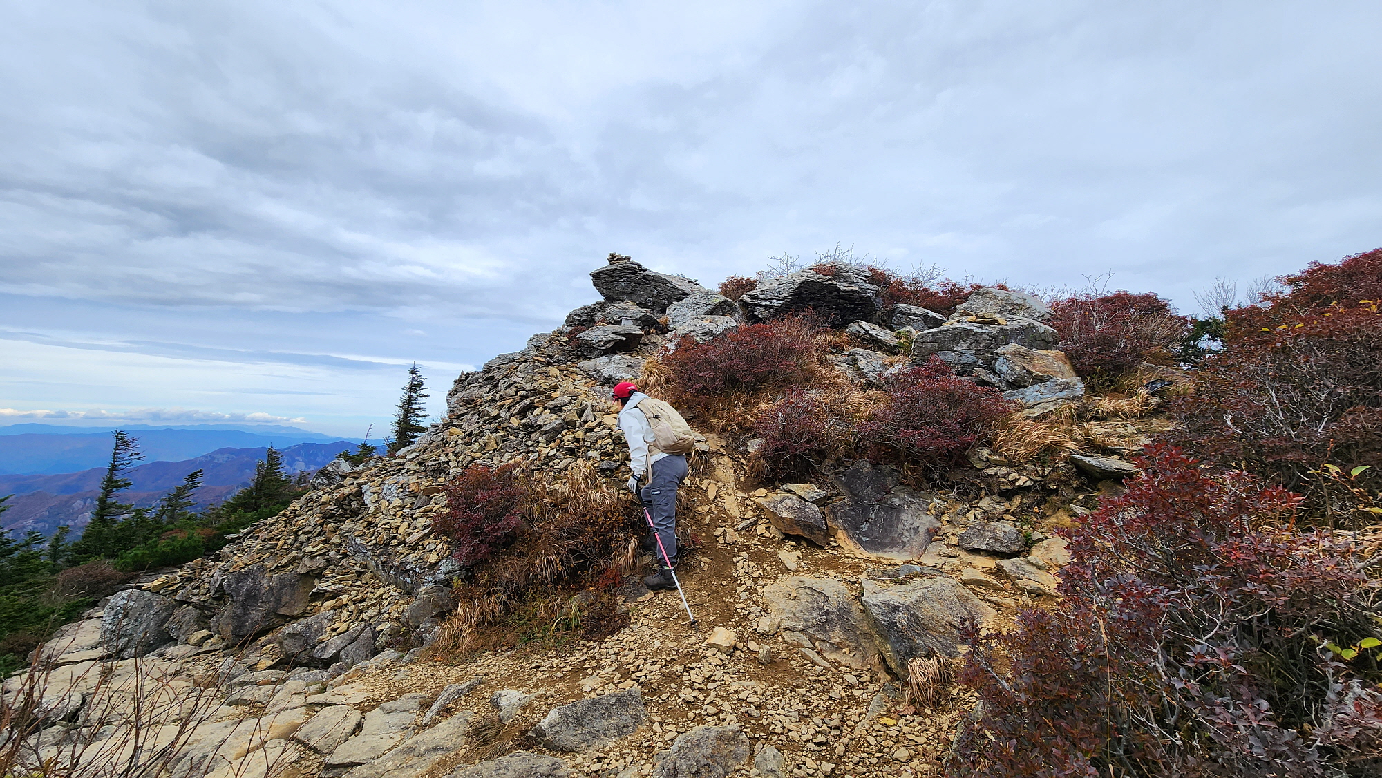 첫 조망이 열리는 암릉에 도착합니다.