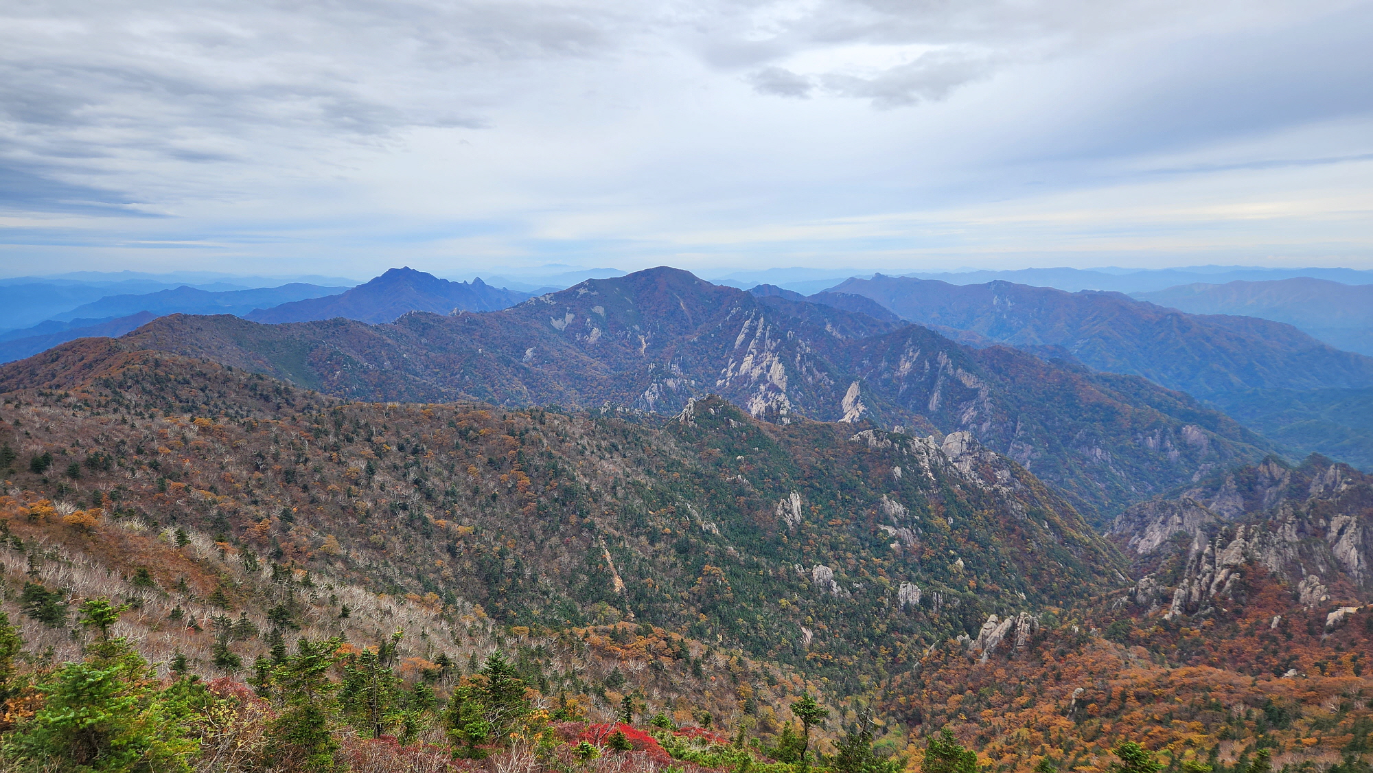 대청봉 조망이 흐린날씨로 조망이 없을줄 알았는데, 그래도 설악을 다 보여주니 감사함 입니다.