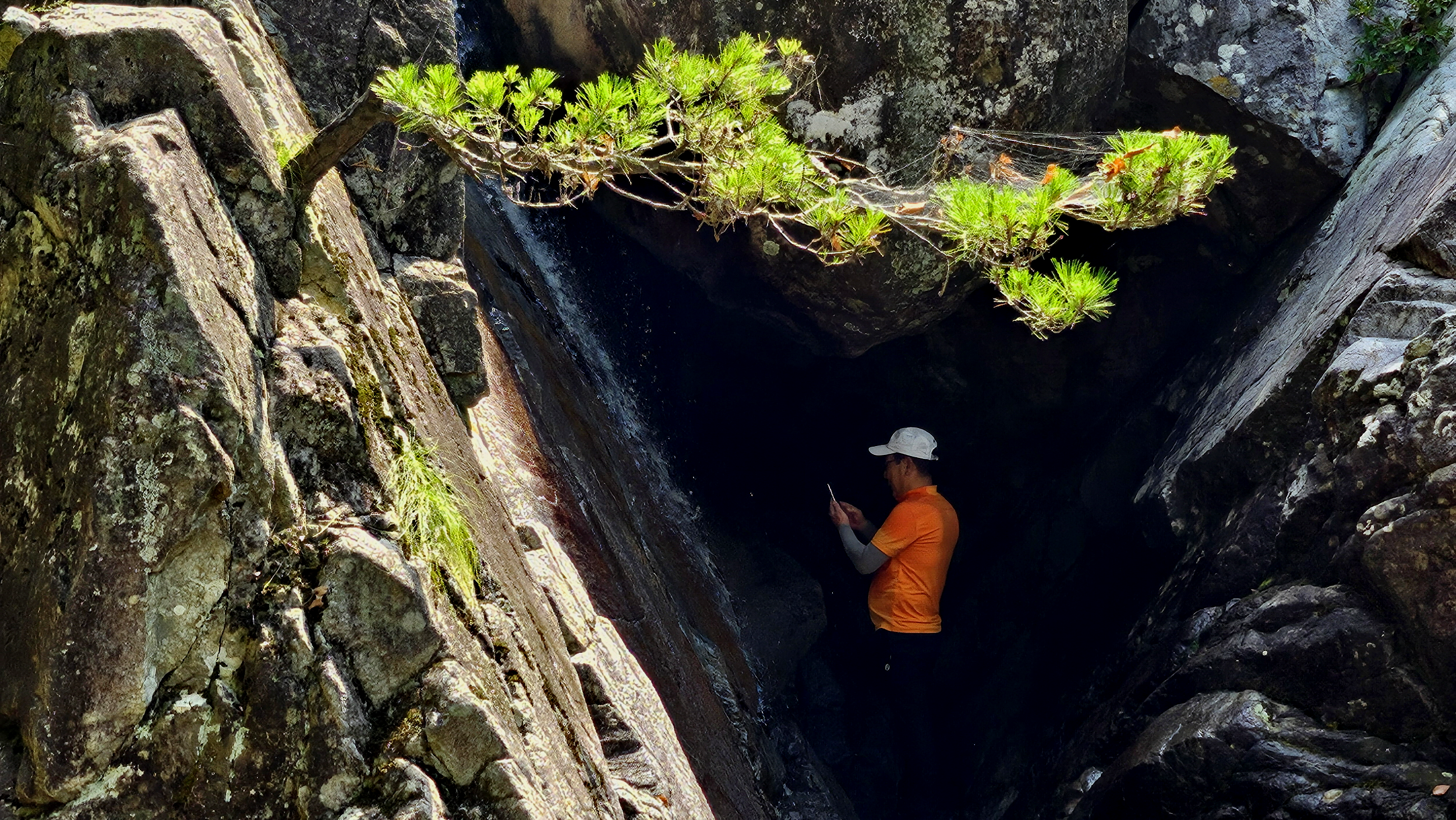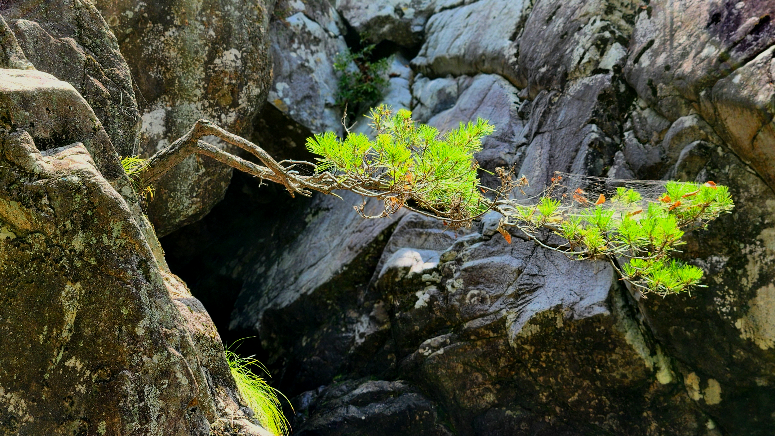 이곳에 들때면 늘 안위가 궁굼한 굴폭포 바위끝에 자생하는 솔