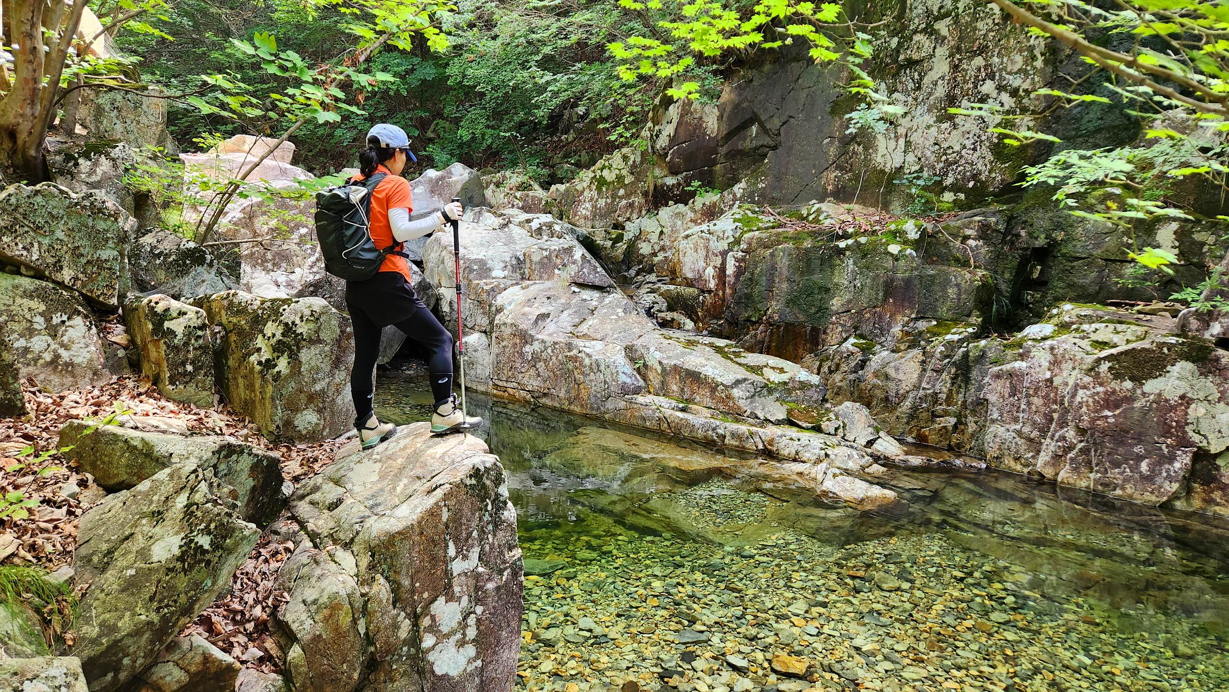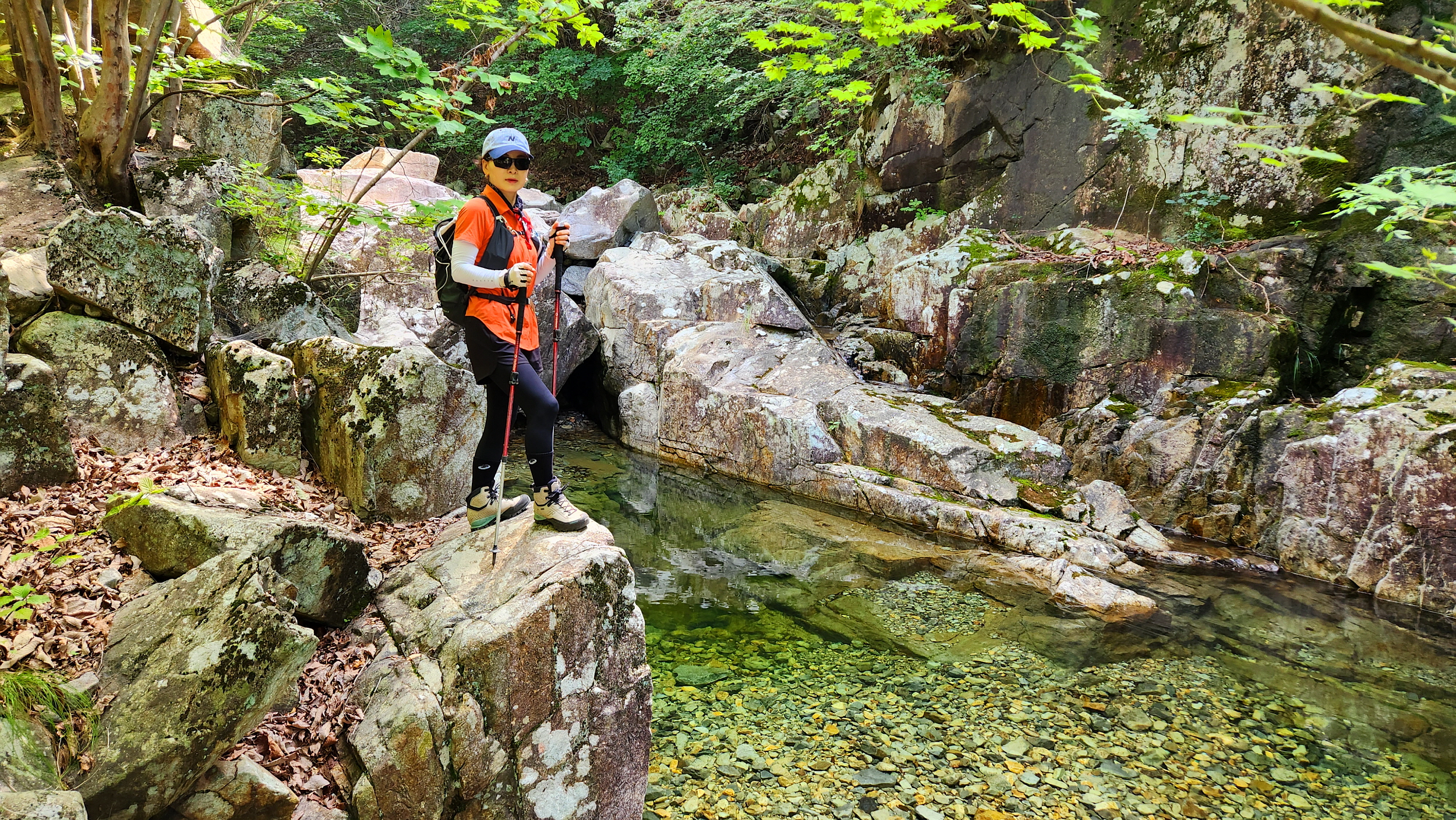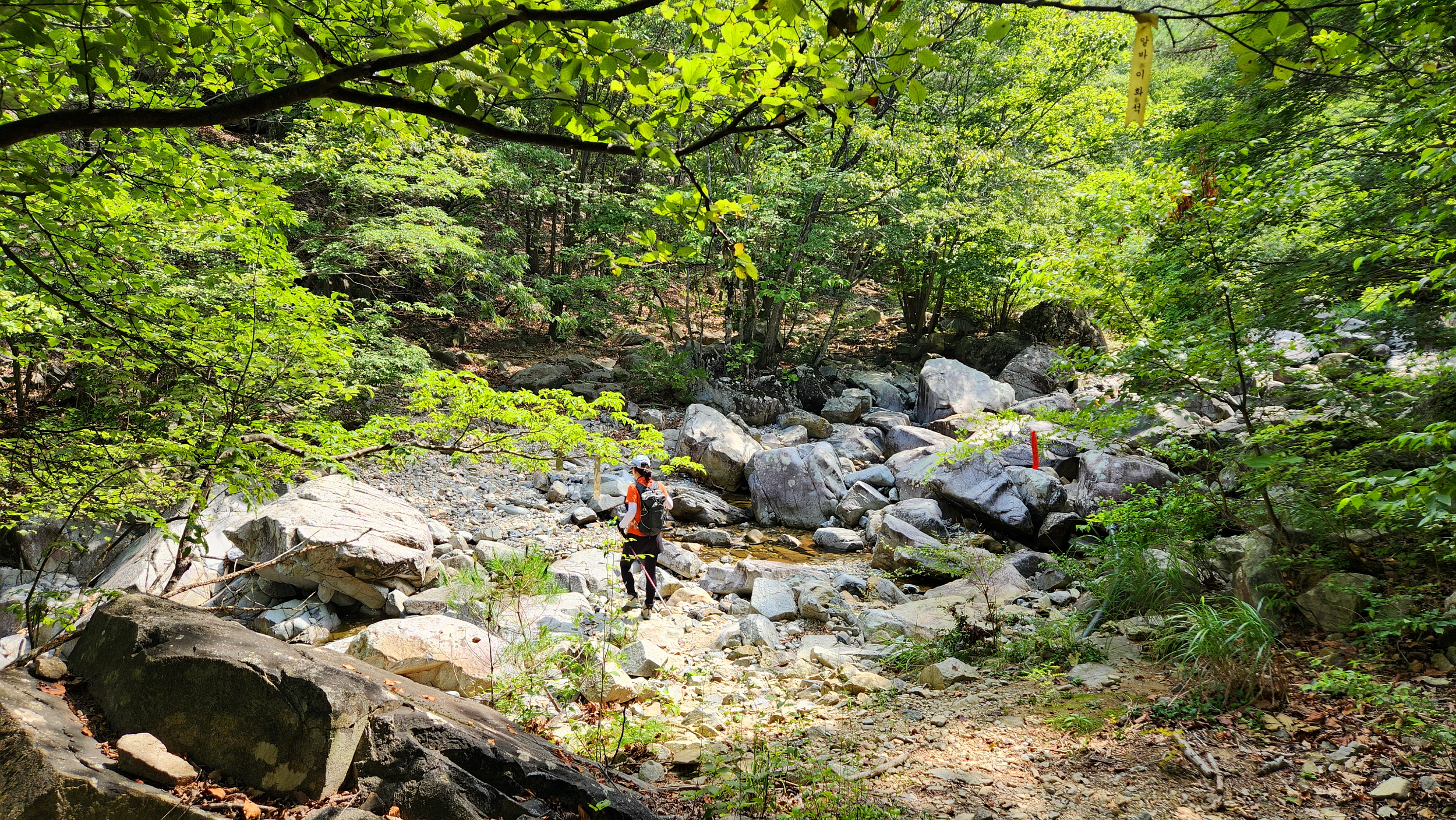 계곡을 건너는 지점에서 이제부터 계곡을 따라 오릅니다.