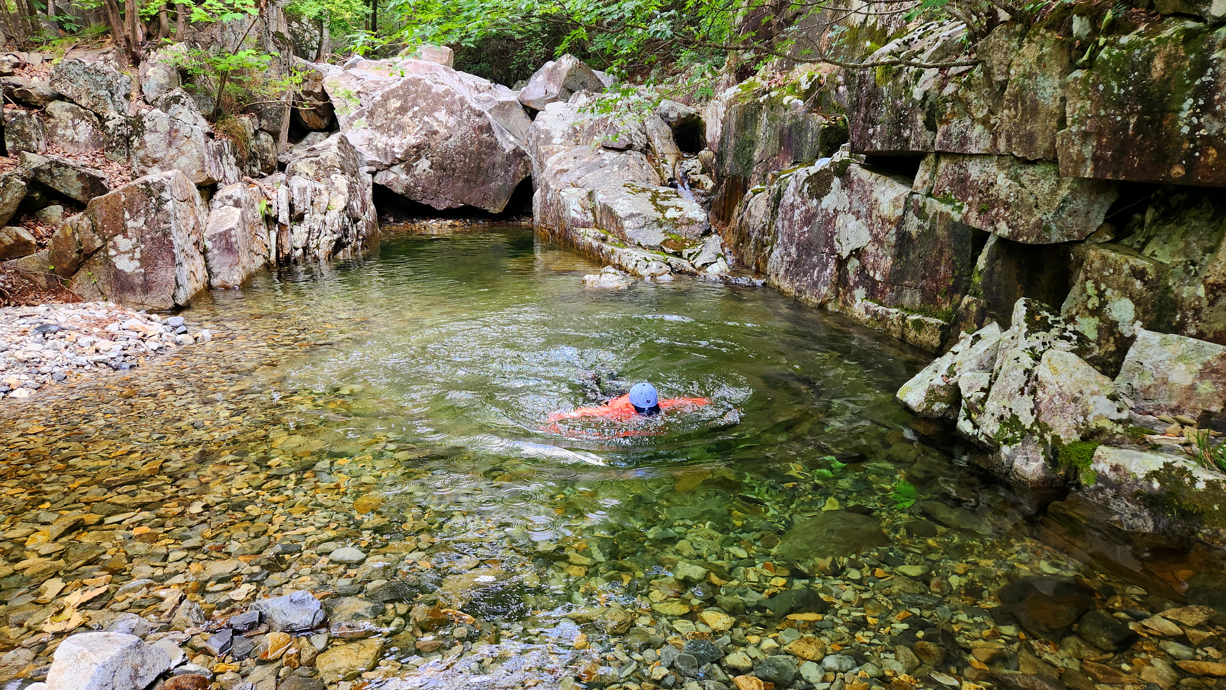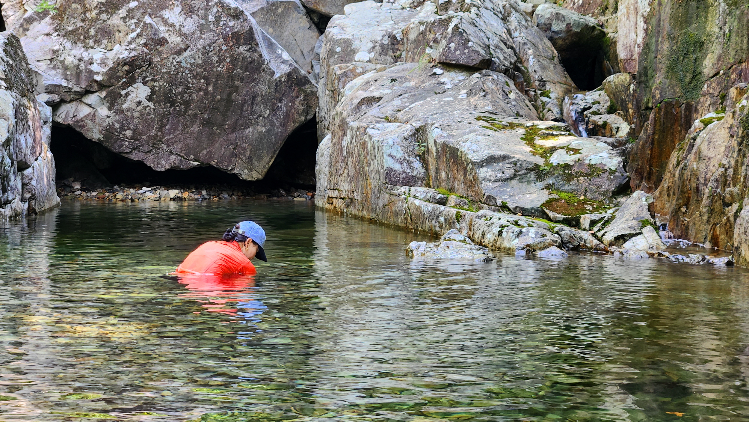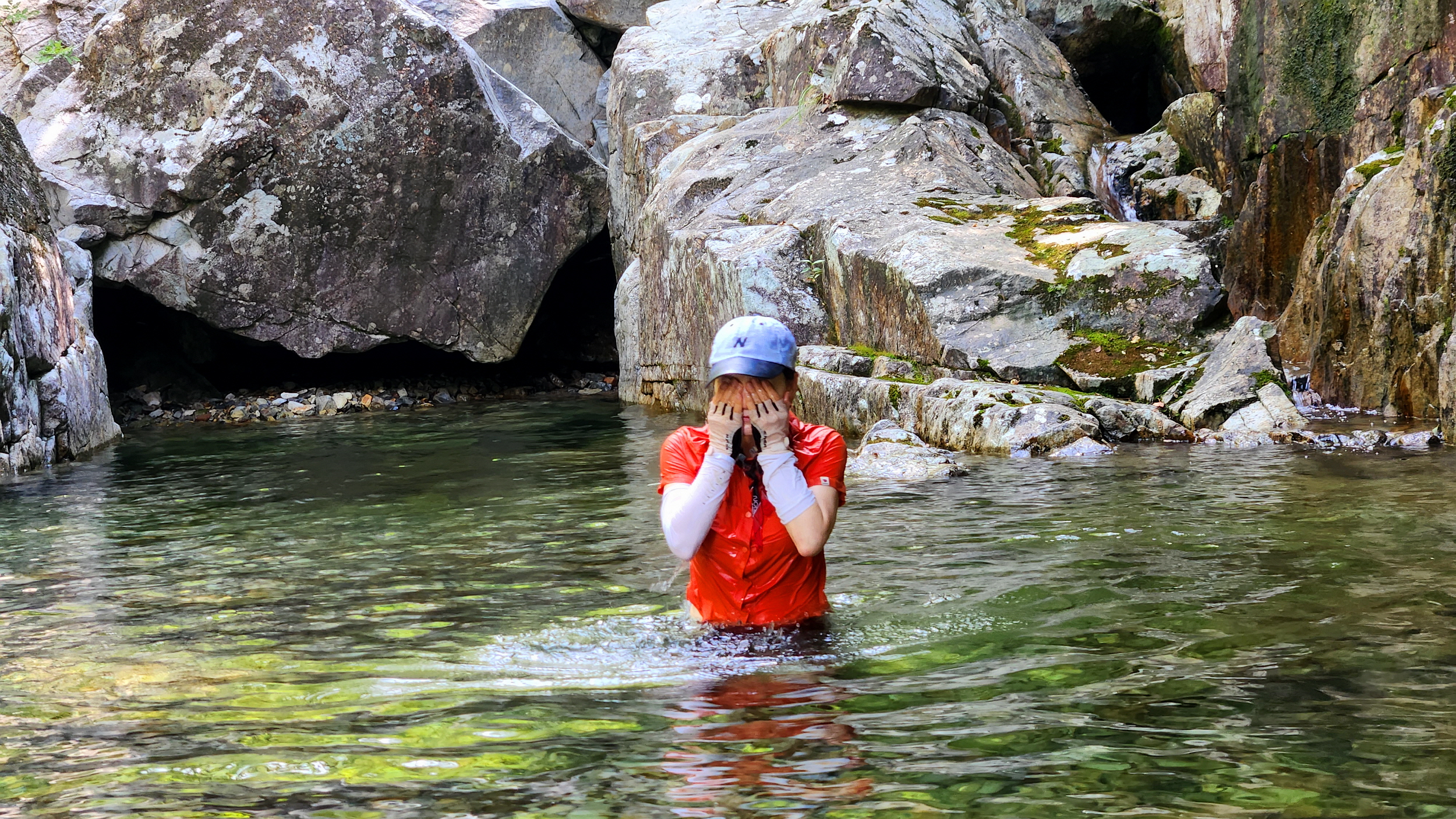 그리고 폭포소에 바로 뛰어들고, 역시 한키 넘는 수심입니다.