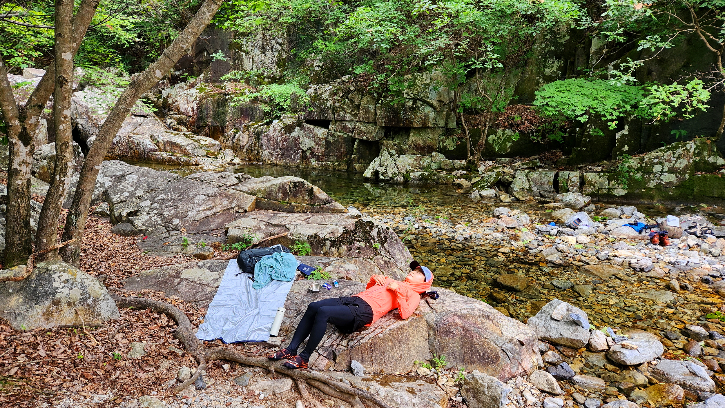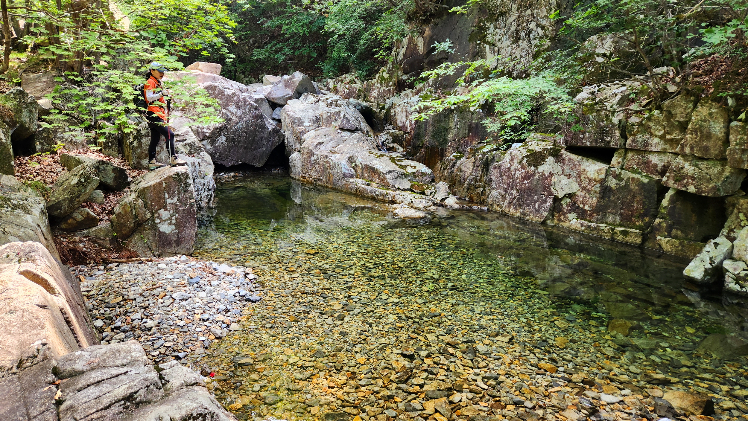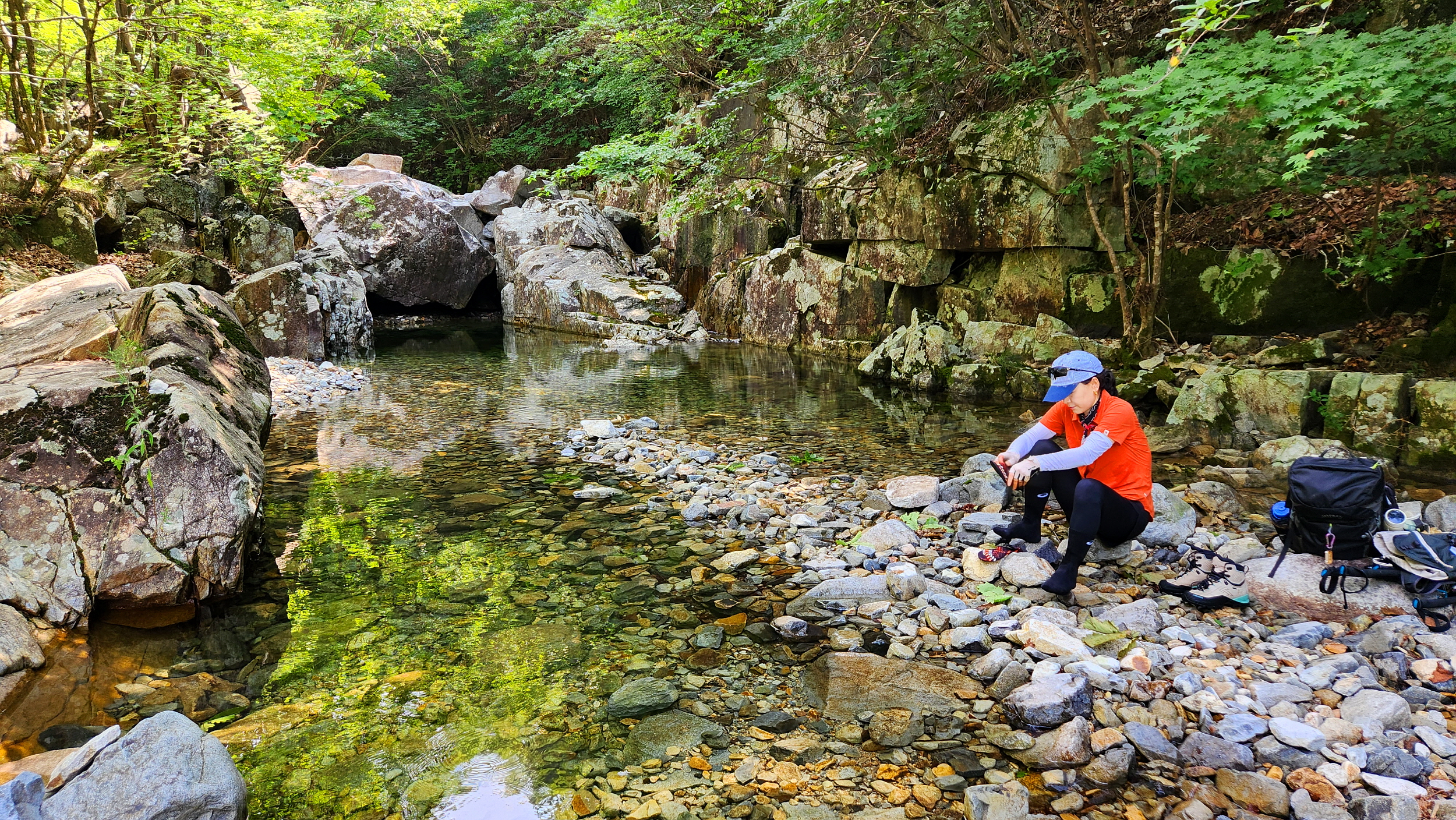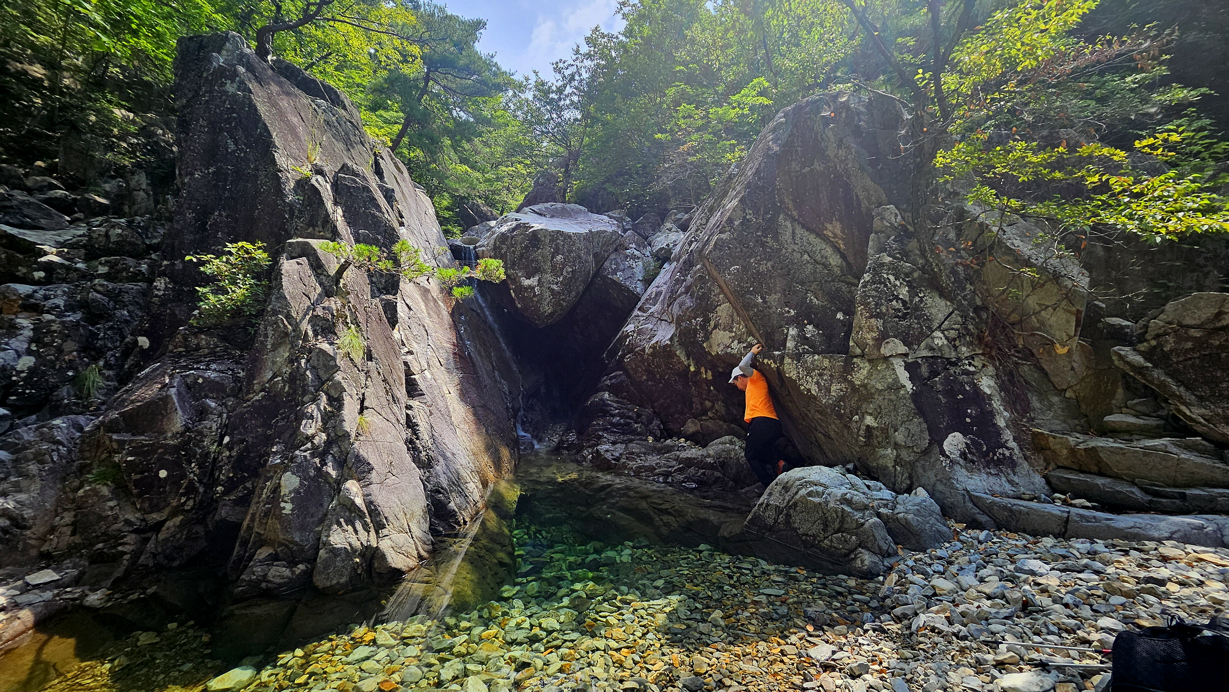 벌써 후끈 달아오른 날씨, 초반부터 땀이 비오듯 흐르고, 빨리 위에 올라가 깊은 소에 풍덩하고 싶다는 생각밖에 들지 않네요.