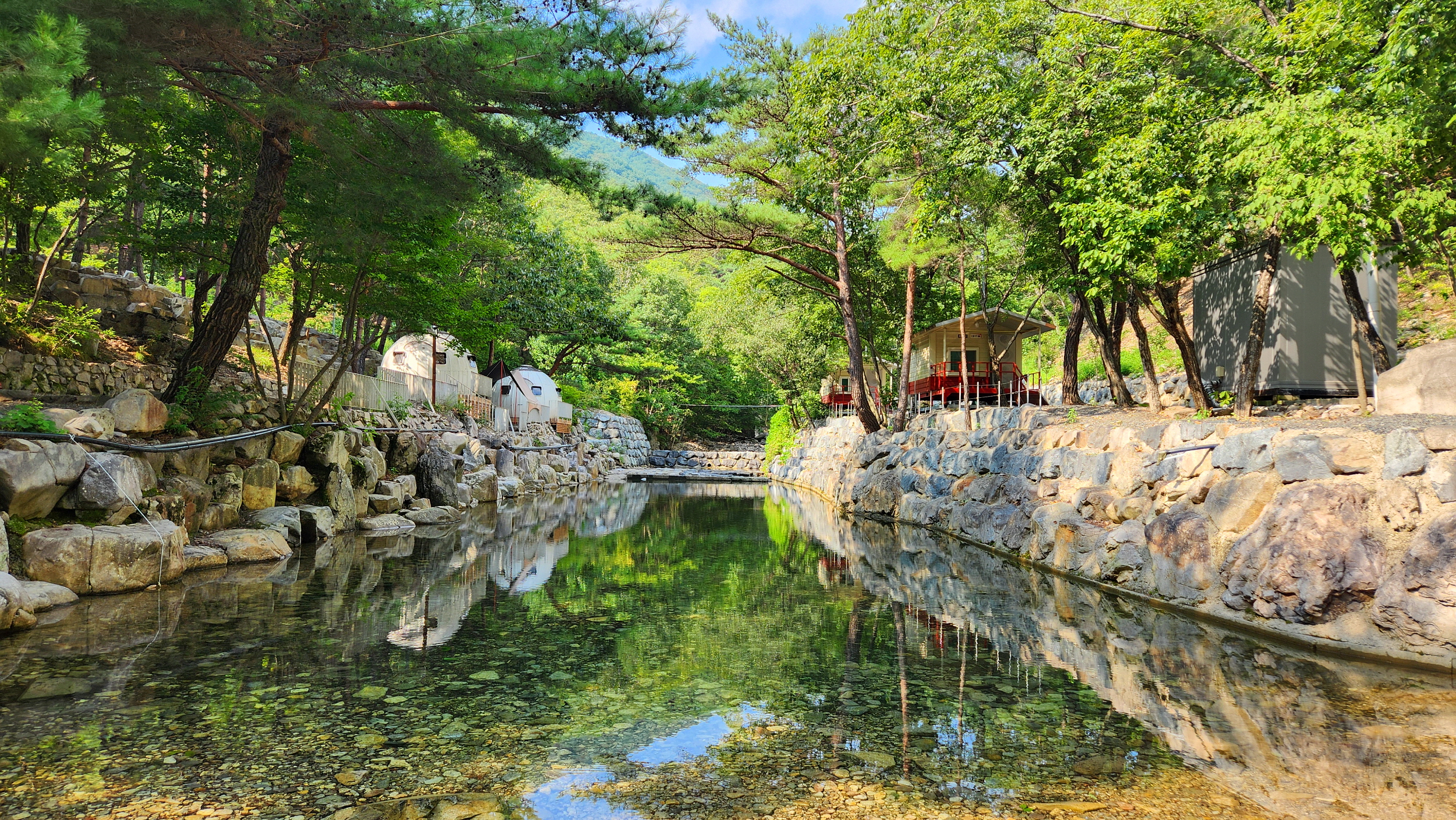 오토갬핑장 영역이 계속 확장되고 있는 듯, 계곡은 잘 다듬어 이런 물놀이장이 수백미터 됩니다.