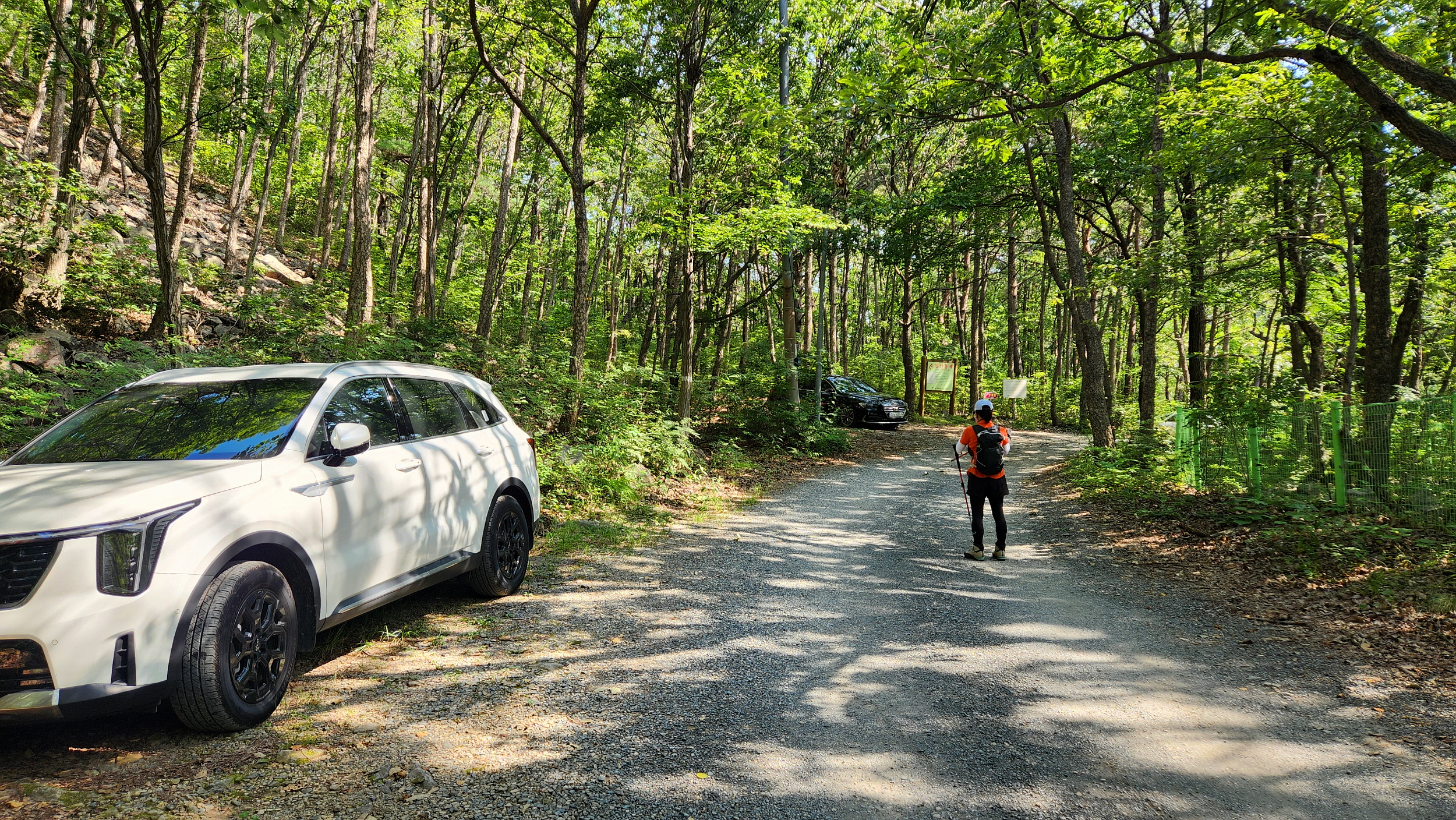 이곳은 주차할 때가 마땅치 않지만, 임도 이면에 차량통행에 방해되지 않게 서너대 주차할 수 있습니다.