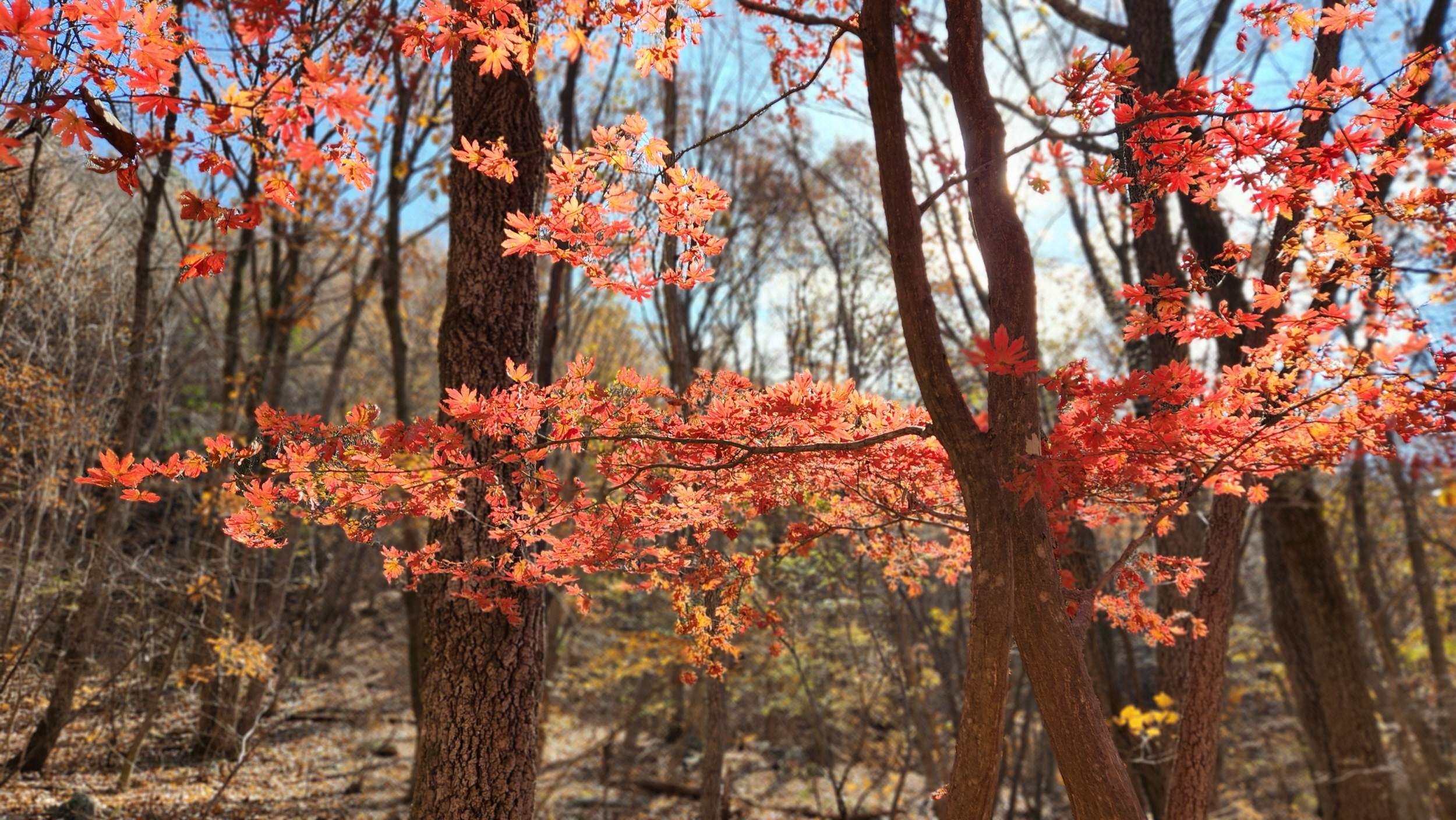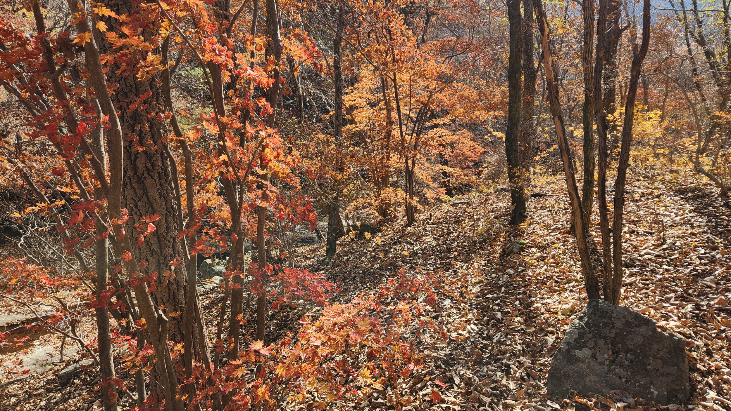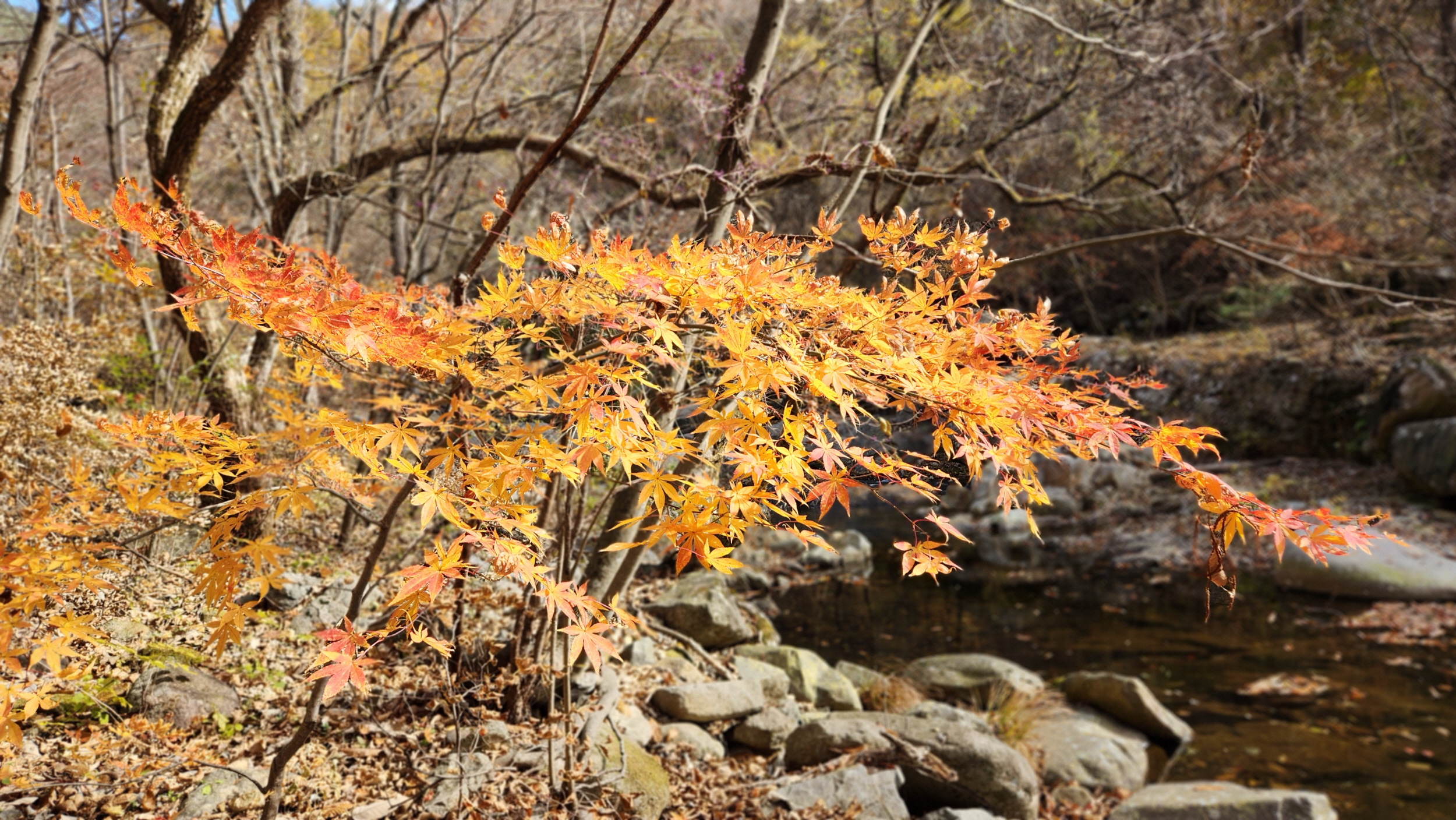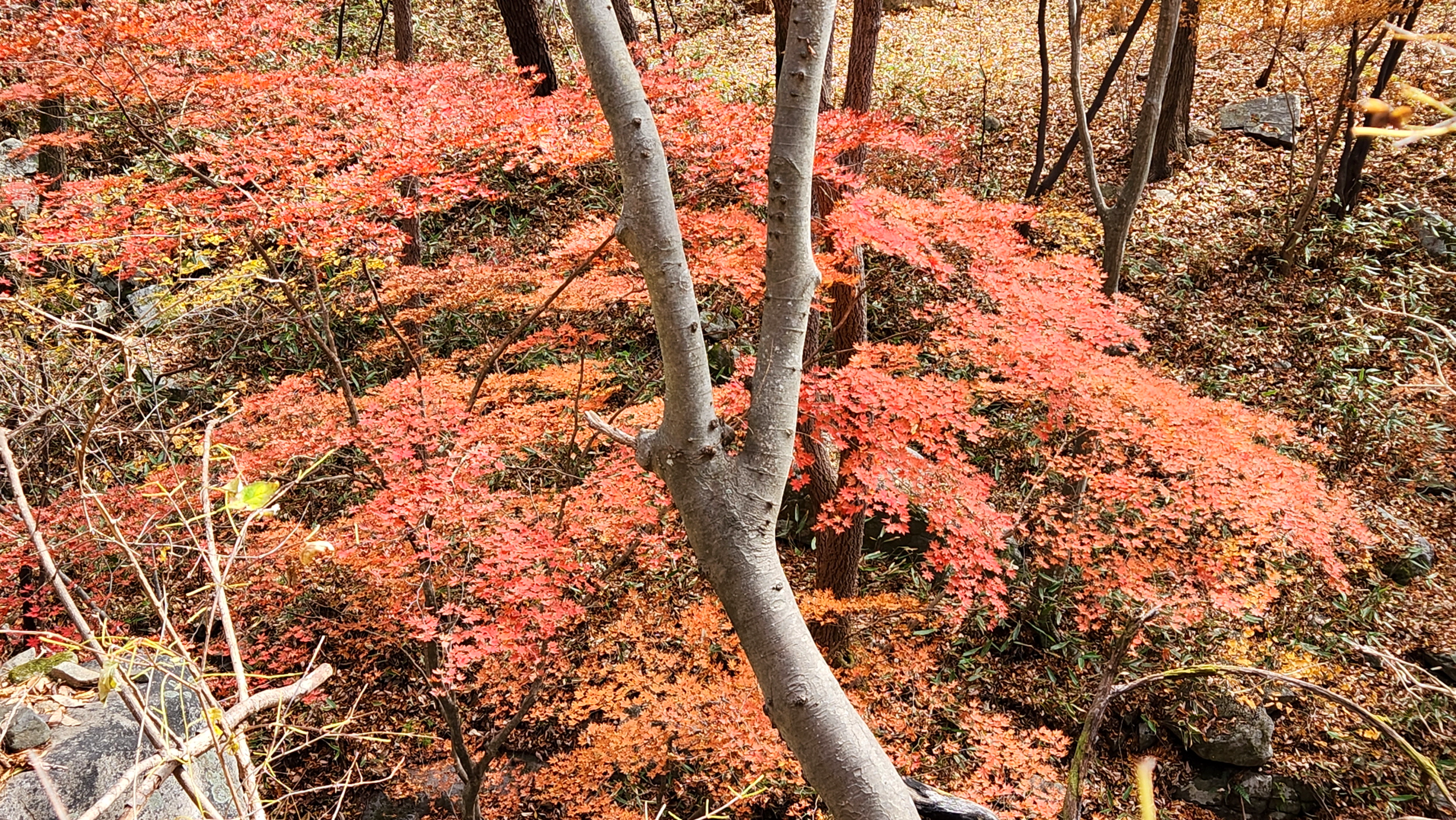 휑~한 곳...급경사 계곡에 홀로 빛을 발하는 단풍나무 한구루 입니다.