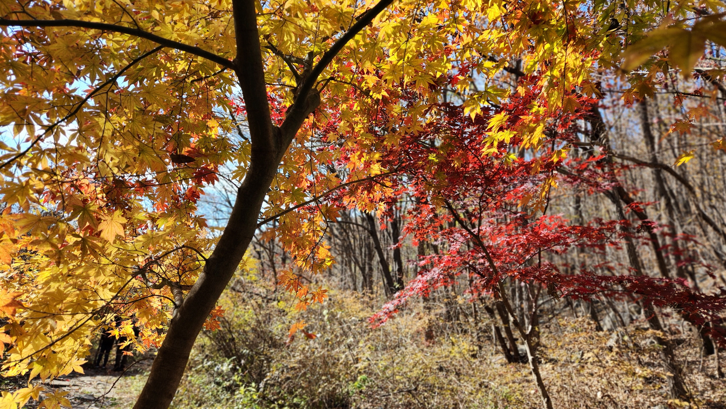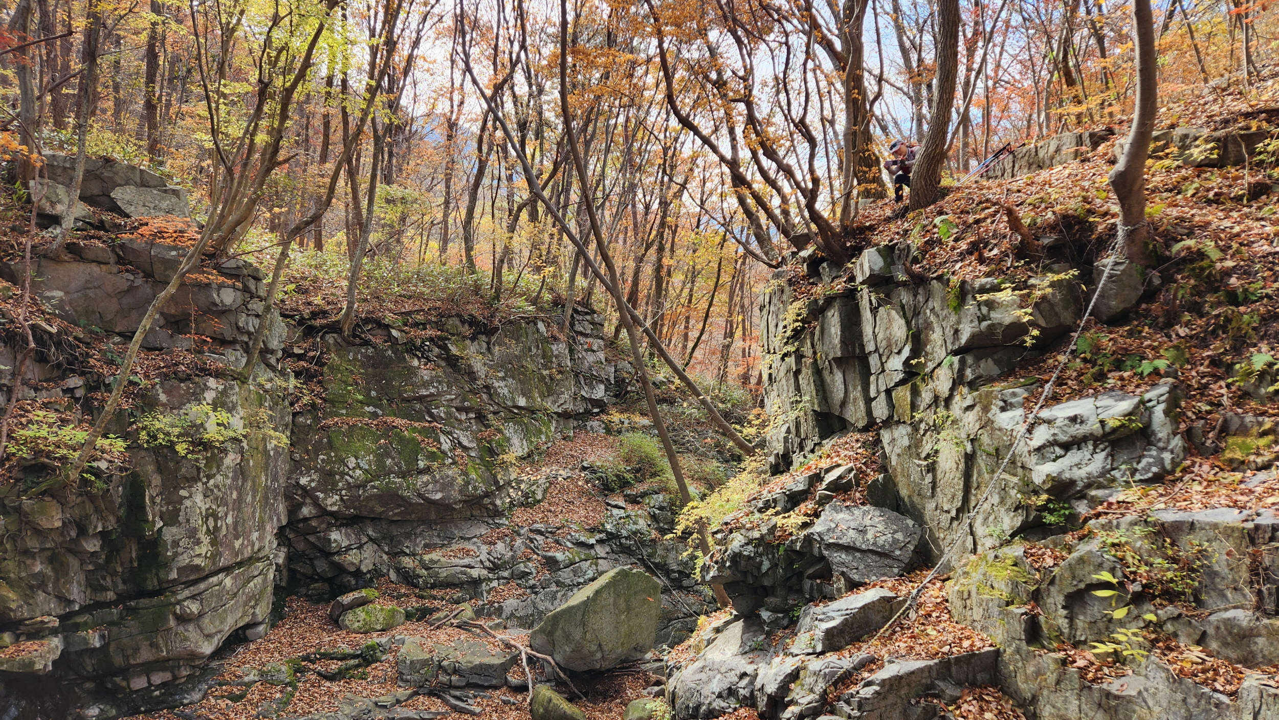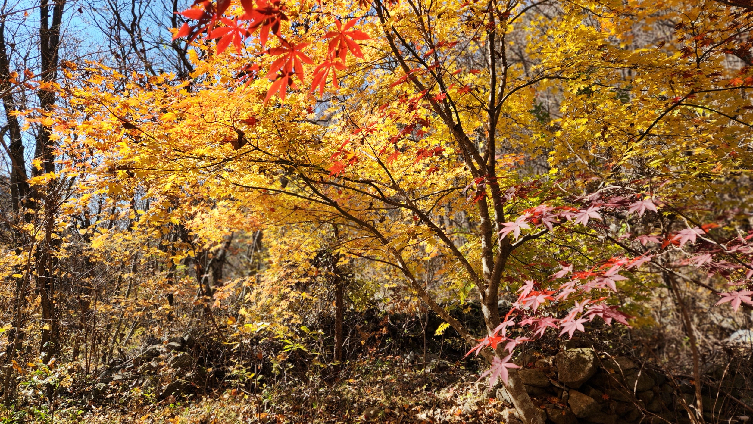 휑~한 곳...급경사 계곡에 홀로 빛을 발하는 단풍나무 한구루 입니다.