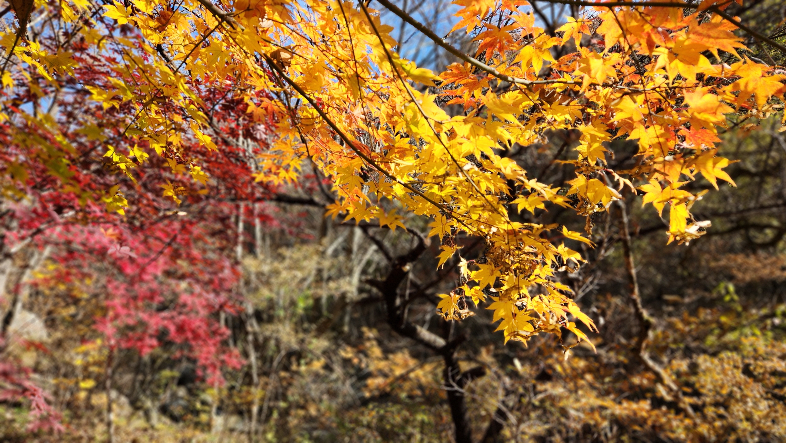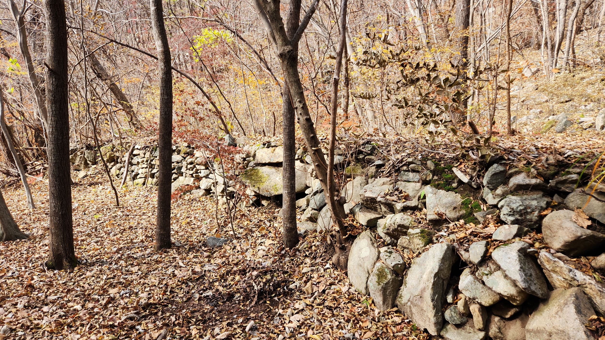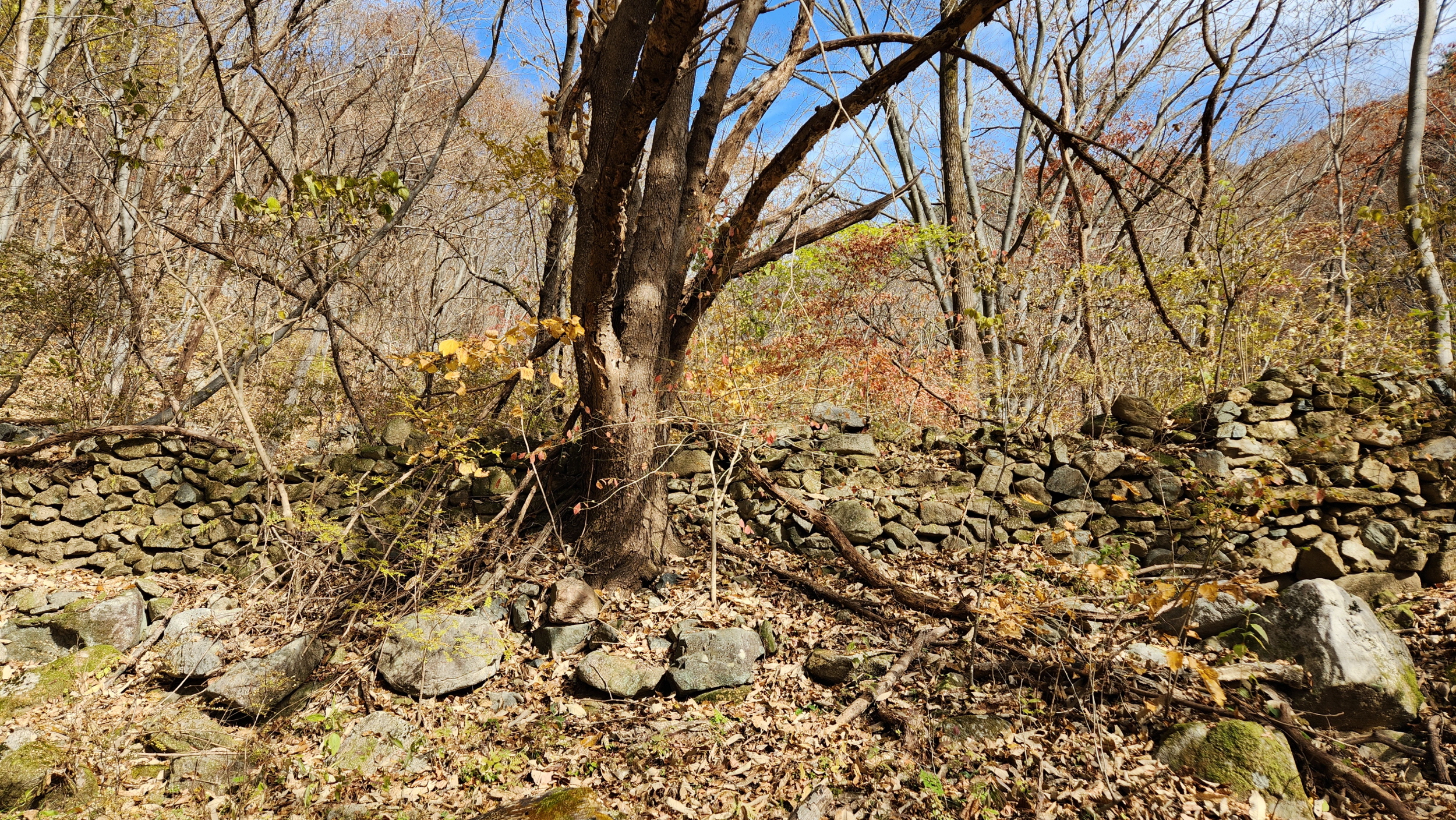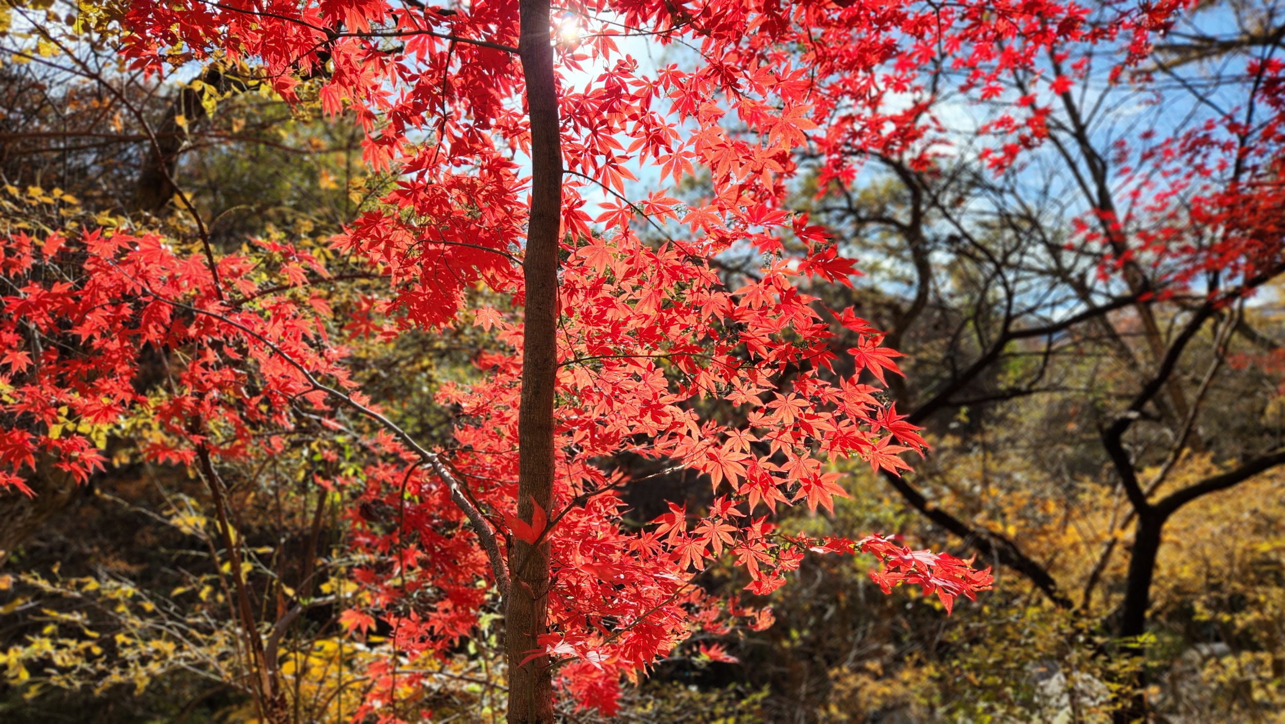 휑~한 곳...급경사 계곡에 홀로 빛을 발하는 단풍나무 한구루 입니다.