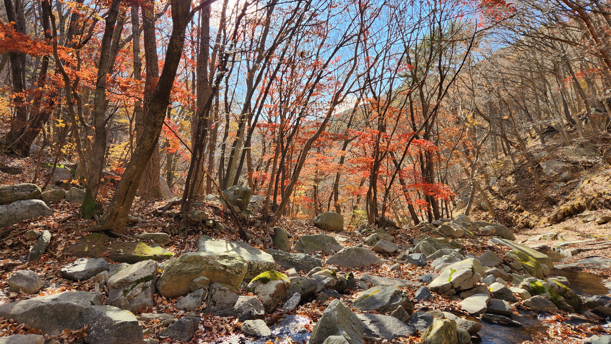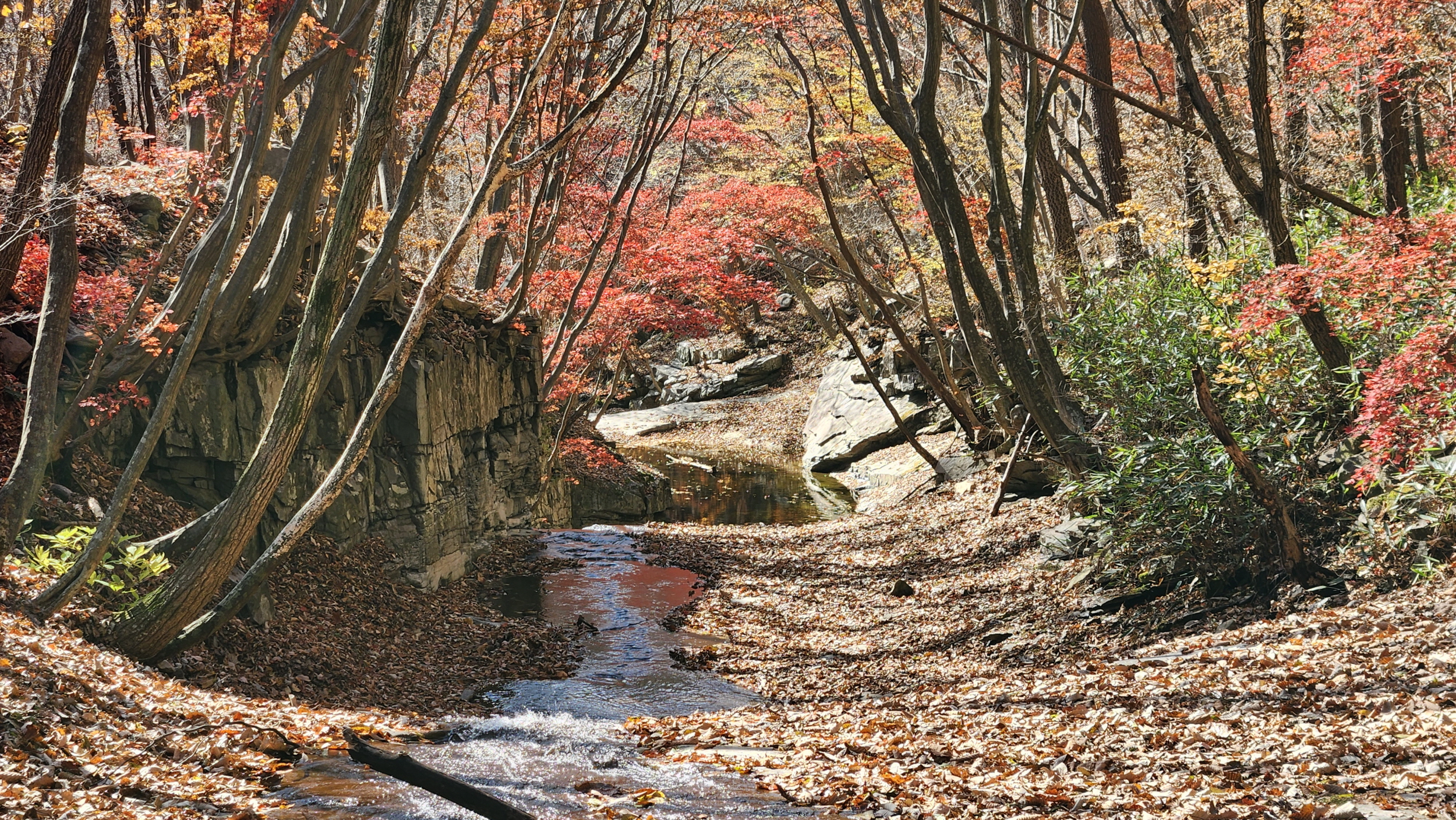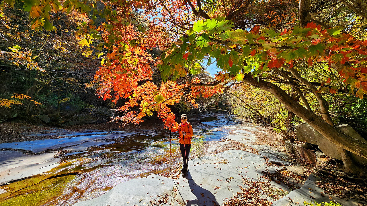2024.11.3 (일) 영남알프스에 가을빛 내려 앉을 즘 가볍게 즐기는 단풍놀이 장소 쇠점골매년 10월 말 전후에 선홍빛 단풍이 온 계곡을 물들이는 곳 입니다. 올 가을도 어김없이 쇠점골 단풍을 즐기