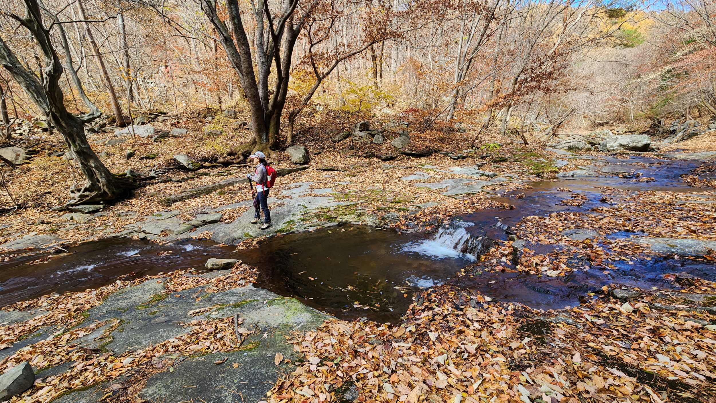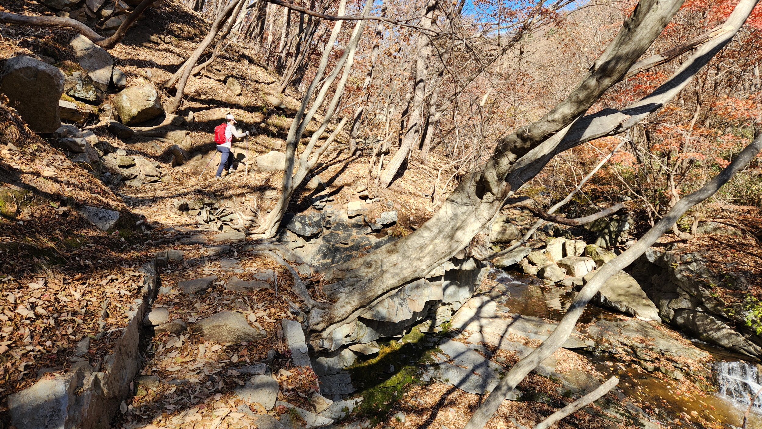 계곡으로 내려서기...!