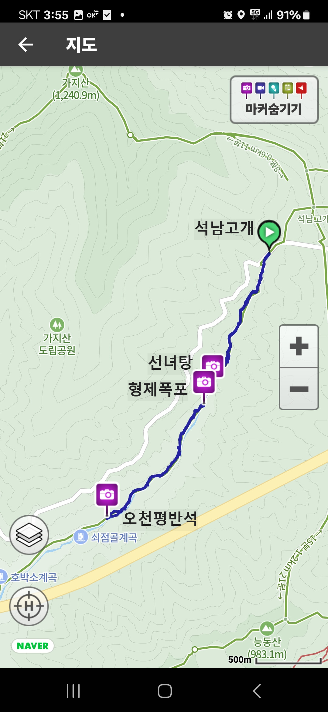집에서 늦으막히 출발하여 쇠점골 오천평반석까지 왕복하기로 합니다.