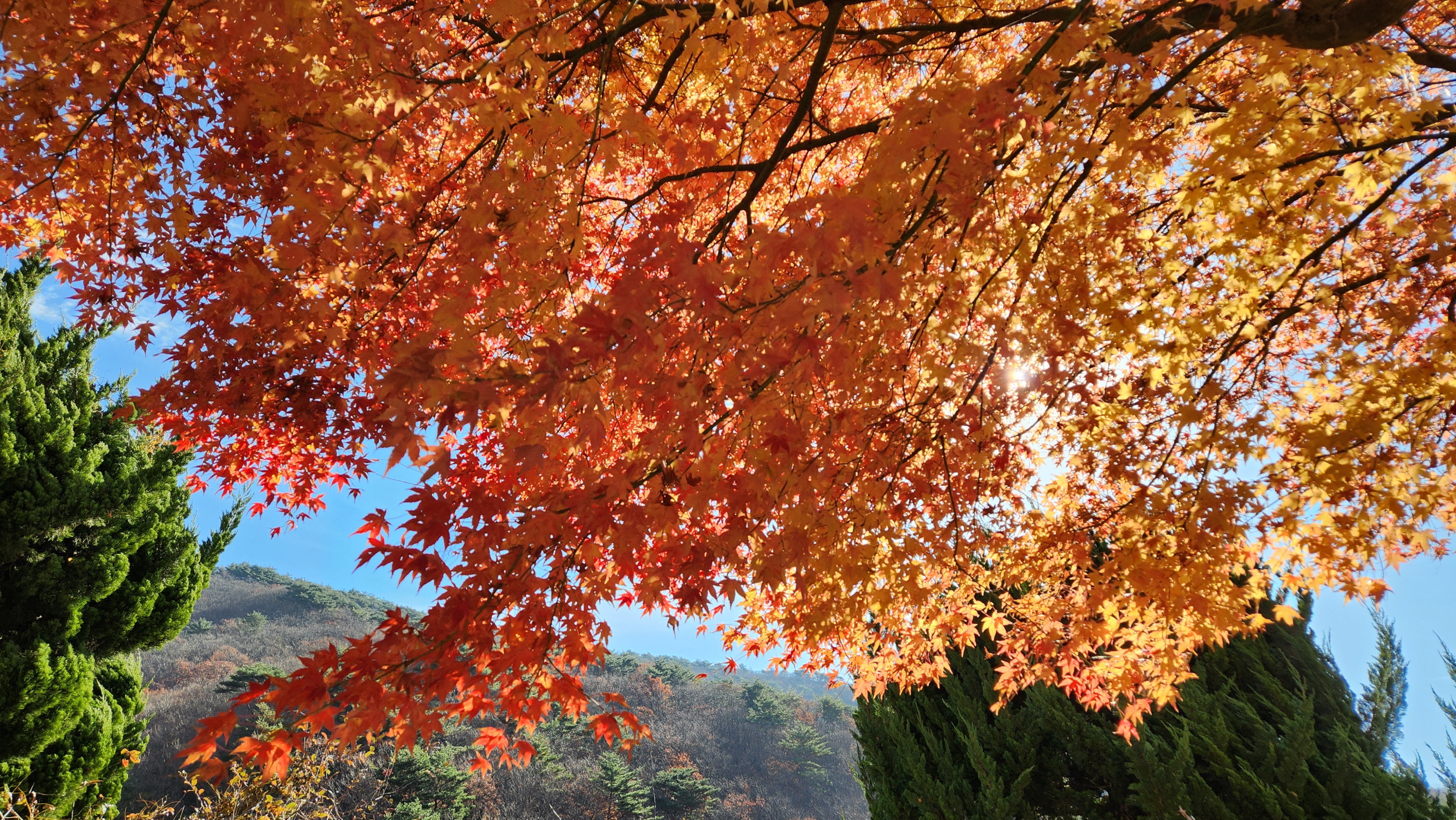어떨게 이렇게 한순간에 왕창 단풍이 질까, 분명 기후가 이상하기만 합니다.
